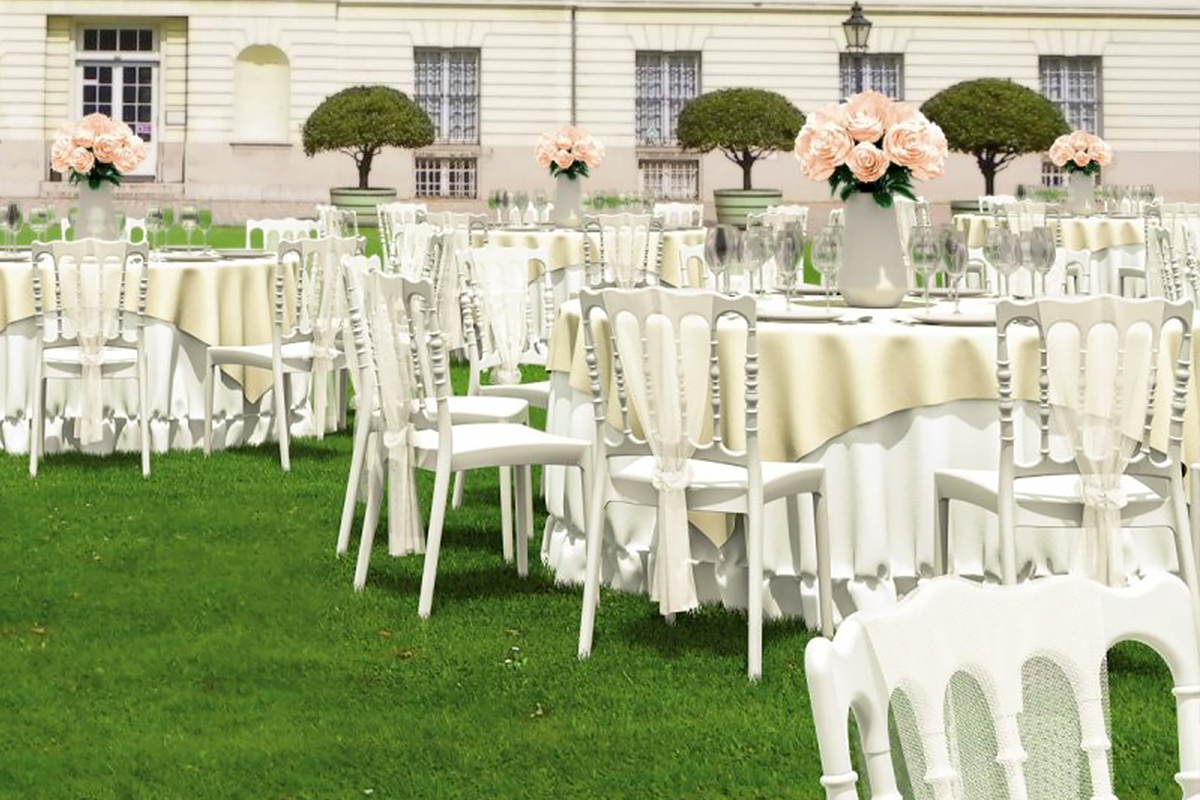 - ■ Mobilier :Location de chaises, de tables rectangulaires ou rondes et de manges-debout.