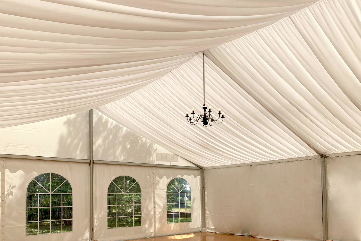 - ■ Décoration :Installation de velum PRESTIGE (tissus drapé blanc).