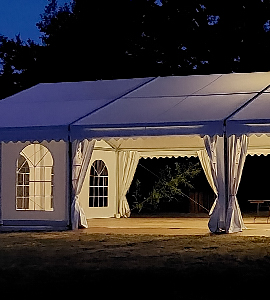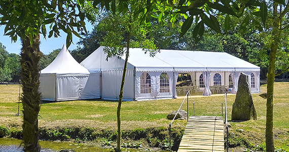 La petite tente de réception qui a tout d’une grande avec ses fenêtres Versailles, idéal pour les mariages mais aussi pour les manifestations événementielles (réceptions, expositions, soirées...).