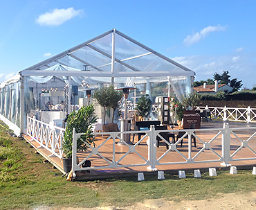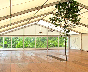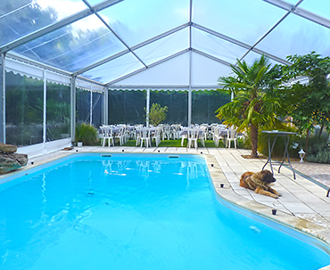 - ■ Intégration d'éléments existants :Il arrive parfois que la structure soit positionnée à un endroit avec une ou plusieurs contraintes. Notre équipe peux intégrer ces éléments dans le chapiteau : arbres, plantes, piscines, fontaines...