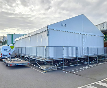- ■ Solutions techniques : BFM location peux vous proposer des installations techniques en complément de la structure choisie : terrasse bois, podium d'élévation, scène, rampe d'accès, lestage.