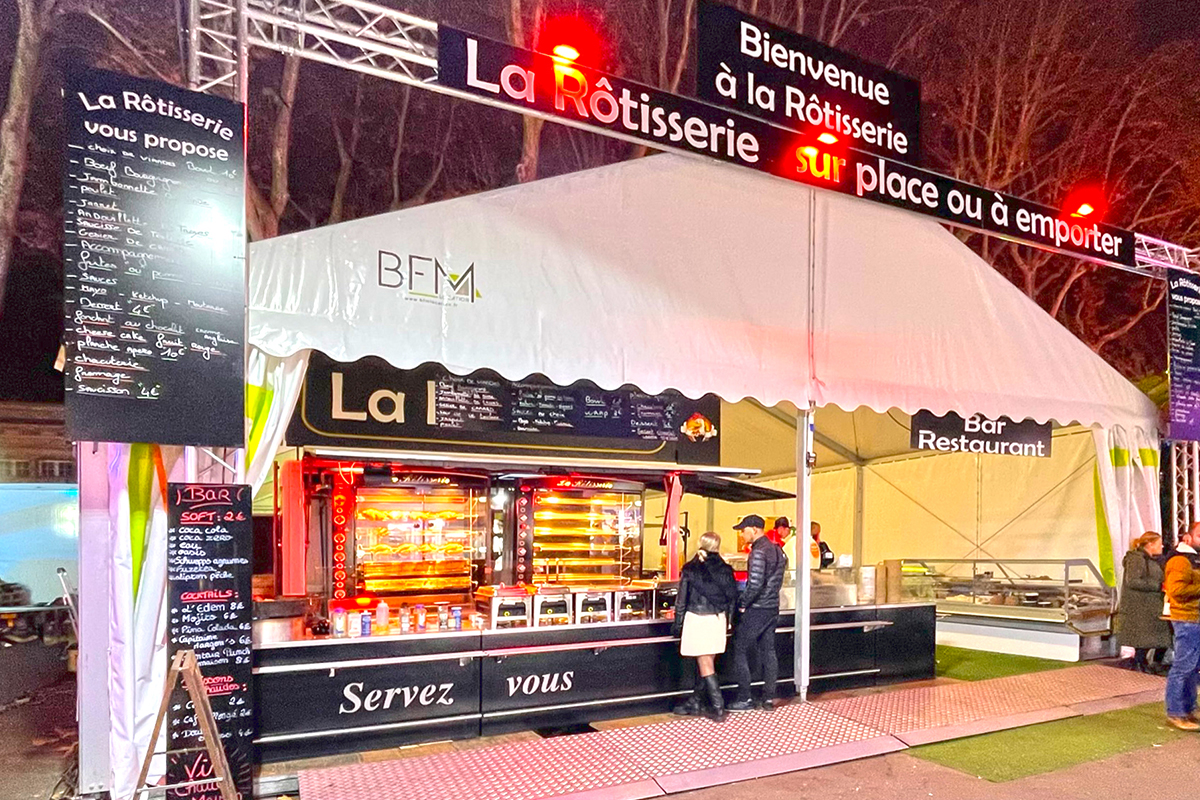 - ■ Equipement complémentaire possible :Parquet de qualité, moquette, terrasse attenante à la structure, rampe d'accès, éclairages, velum, chauffage, tables, chaises, manges debout, lestage ...